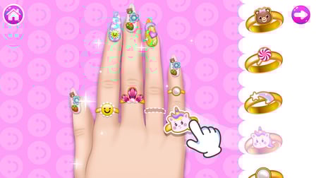 Utilisez votre doigt sur des appareils tactiles ou votre souris sur un bureau pour sélectionner différentes options. Cliquez ou appuyez pour choisir les formes, les couleurs et les décorations des ongles, et faites-les glisser en place pour finaliser vos magnifiques dessins d'ongles.