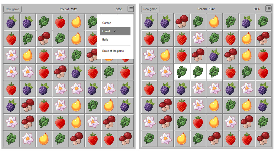 Entrez dans l'univers colorĂ© de Match 3 Game. Forest and Garden, oĂč la gameplay captivante vous entraĂźnera dans un monde de nature luxuriante et de jardin secret. Le but est simple : accumuler le plus de points possible en Ă©changeant des images adjacentes pour crĂ©er des lignes de trois images identiques ou plus. Chaque combo rĂ©ussi vous fera gagner des bonus et mettre Ă l'Ă©preuve votre esprit stratĂ©gique.