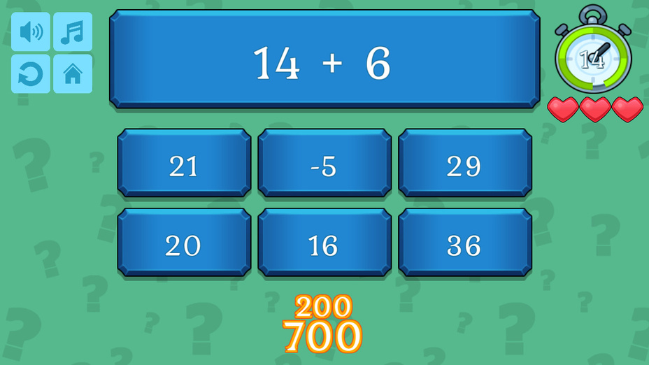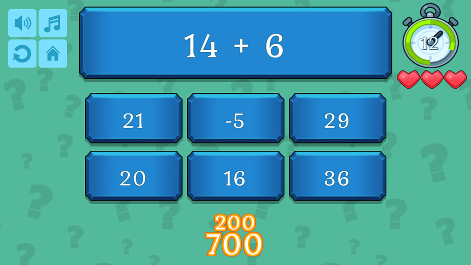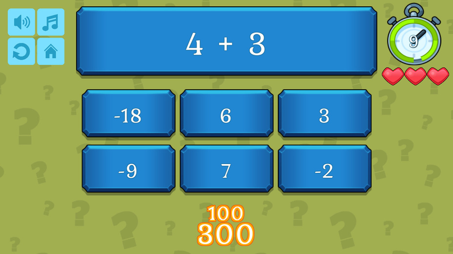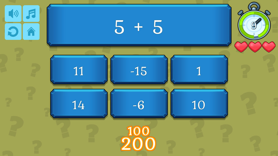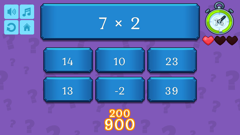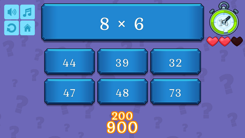 Testez vos prouesses mathématiques avec Quiz Mathématiques! Ce jeu engageant met au défi votre capacité à ajouter, soustraire, multiplier, et diviser des chiffres dans votre esprit. Mettez vos compétences à l'épreuve sans l'aide d'une calculatrice et voyez à quel point vous pouvez performer. Disponible pour jouer en ligne gratuitement sur les deux téléphone et ordinateur, Math Quiz offre un moyen passionnant d'affiner vos compétences en mathématiques.