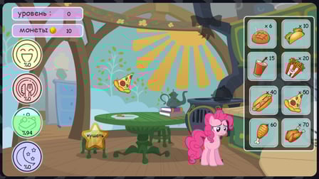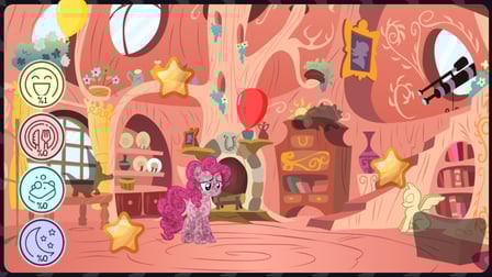 - Gardez le compteur de bonheur de Pinkie Pie plein en vous engageant dans des activités amusantes