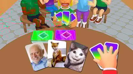 Pour jouer à Meme Battle, lance simplement le jeu dans ton navigateur. La jouabilité consiste à identifier et créer des memes qui correspondent à certains prompts. Utilise ton bouton gauche de la souris pour cliquer et sélectionner le meme correct qui convient au contexte du scénario donné. Sur mobile, appuie sur l'écran pour faire tes choix. Le jeu offre une expérience hilarante puisque tu te mesures à des amis ou à des adversaires aléatoires, testant ta capacité à faire le meilleur choix de meme lors de rondes rapides.