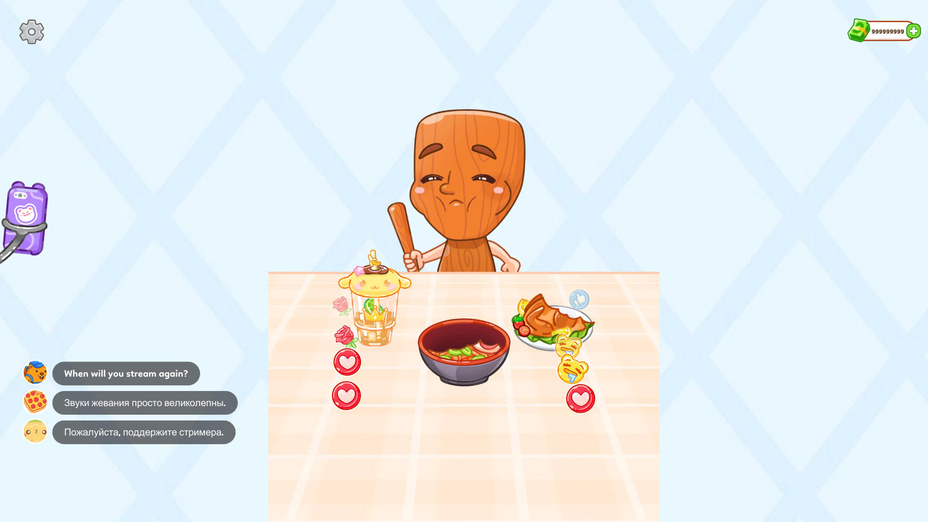 - Sur un ordinateur : Utilisez votre souris pour cliquer sur divers aliments à manger. Répondez aux commentaires de l'audience en utilisant des raccourcis clavier pour une interaction rapide.