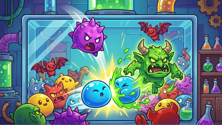 Déplacez votre souris (bureau) ou faites glisser votre doigt (mobile) pour viser. Cliquez ou appuyez pour libérer le monstre. La physique prend le dessus. Les monstres rebondissent. Roulent. Entrent en collision. Les types identiques fusionnent au contact. Utilisez les angles. Utilisez l'élan. Alignez ces réactions en chaîne avant de lâcher.