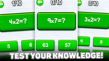 Dans Table de multiplication: Testez-vous!, les joueurs se lancent dans un voyage à travers le monde des nombres où ils devront faire face à des équations de multiplication de plus en plus difficiles. Les visuels sont lumineux et invitants, conçus pour encourager les utilisateurs de tous âges. Le battement de cœur émotionnel du jeu est le frisson de la compétition contre soi-même, poussant à obtenir un meilleur score à chaque rencontre.