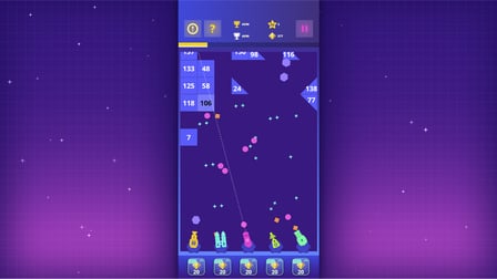 Sur ordinateur, utilisez votre souris pour viser et cliquez pour tirer chaque balle ; sur mobile, faites glisser votre doigt là où vous voulez lancer la balle. Débloquez différentes balles et déclenchez des attaques de tremblement de terre dévastatrices pour dégager les blocs lorsque vous êtes dans des situations difficiles !