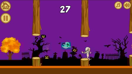 Entrez dans le royaume fantomatique en utilisant le clavier de votre ordinateur ou l'écran tactile sur votre smartphone. Positionnez votre fantôme en utilisant les flèches directionnelles pour naviguer; appuyez sur la flèche vers le haut pour monter et la flèche vers le bas pour descendre. Évitez de percuter les accessoires effrayants tout en collectant des jetons pour booster votre score !