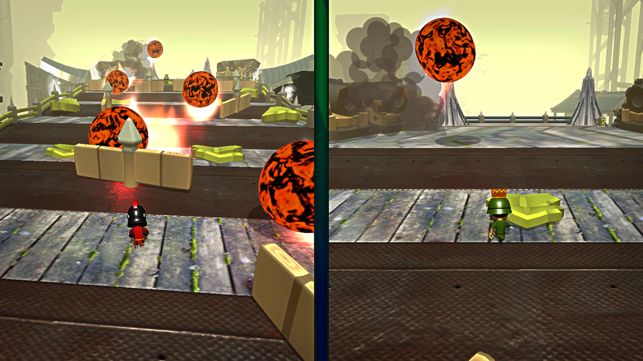 Plongez directement dans l'action en sélectionnant votre mode préféré. En mode solo, vous affronterez des adversaires robots, tandis qu'en mode deux joueurs, vous pourrez défier un ami. Utilisez les touches fléchées pour déplacer votre personnage et soyez vigilant pour éviter les obstacles. Collectez des pièces éparpillées dans le jeu pour débloquer de nouveaux personnages et skins.