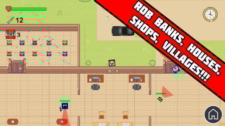 Dans Noob: Le vol du siècle!, vous prendrez le contrôle du Noob espiègle pour exécuter le grand casse sans vous faire prendre. Le jeu propose 15 niveaux intrigants, chacun situé dans des endroits uniques avec divers adversaires et tâches. Vous affronterez des agents de sécurité, des policiers et plus encore, en utilisant des stratégies innovantes pour ne pas être détecté. Au fur et à mesure que vous progressez, vous pouvez améliorer les compétences de Noob et vous hisser au sommet du classement des voleurs les plus riches. Ce jeu est conçu pour les adolescents et les enfants plus âgés qui aiment les aventures pleines d'action et le gameplay stratégique.