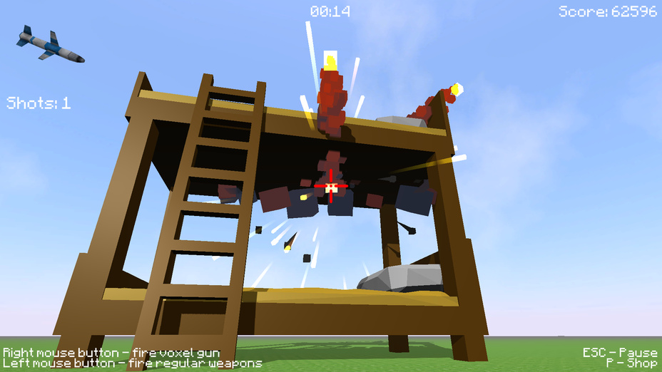 - Clic de Souris / Tap: Tirez sur le pistolet Ă voxels