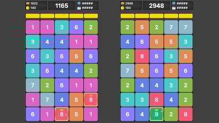 Les contrôles de Number Click Merge sont simples et faciles à maîtriser. Les joueurs utilisent leur souris ou leur écran tactile pour cliquer sur les tuiles de numéros correspondants sur la grille. Lorsque deux nombres égaux sont cliqués, ils fusionnent en une seule tuile avec une valeur d'incrément égale à la somme des deux nombres d'origine. L'objectif est de combiner stratégiquement les nombres pour progresser dans les niveaux et obtenir des scores plus élevés.