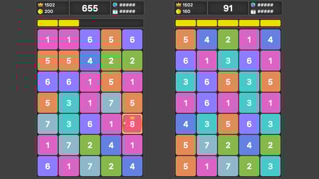 Number Click Merge est un jeu de puzzle 2D engageant et addictif qui combine le frisson de la fusion des nombres avec les mécanismes classiques du jeu de clicker. Les joueurs sont chargés de cliquer et de combiner des nombres égaux sur une grille pour créer de nouveaux nombres plus grands, dans le but d'atteindre le nombre cible. Le jeu offre un mélange homogène de stratégie, d'habileté et de plaisir, ce qui le rend adapté aux joueurs de tous âges. Son gameplay intuitif, ses graphismes éclatants et ses effets sonores satisfaisants contribuent à une expérience utilisateur convaincante qui maintient les joueurs accrochés.