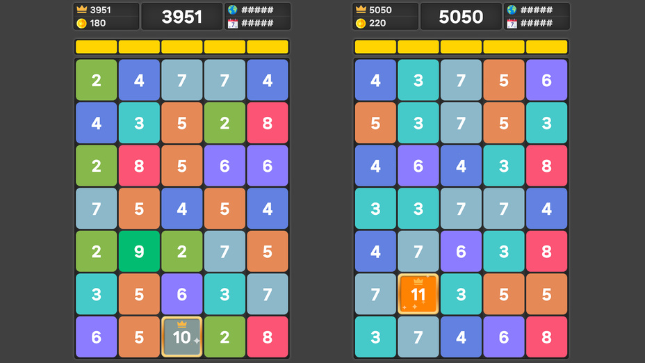 Number Click Merge est un jeu de puzzle 2D engageant et addictif qui combine le frisson de la fusion des nombres avec les mécanismes classiques du jeu de clicker. Les joueurs sont chargés de cliquer et de combiner des nombres égaux sur une grille pour créer de nouveaux nombres plus grands, dans le but d'atteindre le nombre cible. Le jeu offre un mélange homogÚne de stratégie, d'habileté et de plaisir, ce qui le rend adapté aux joueurs de tous ùges. Son gameplay intuitif, ses graphismes éclatants et ses effets sonores satisfaisants contribuent à une expérience utilisateur convaincante qui maintient les joueurs accrochés.