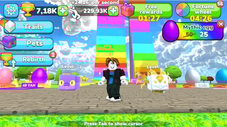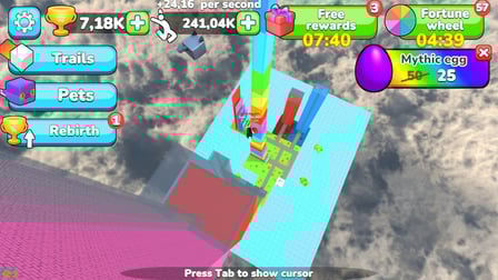 Plongez dans le monde vibrant de Obby + 1 Saut Par Seconde, où des graphismes colorés et des environnements attrayants vous attendent. Les mécanismes de base tournent autour de sauter plus haut chaque seconde, créant un mécanisme de jeu addictif qui vous fait revenir pour plus. Vivez le frisson d'explorer des endroits intéressants tout en vous efforçant d'atteindre les sauts les plus élevés!