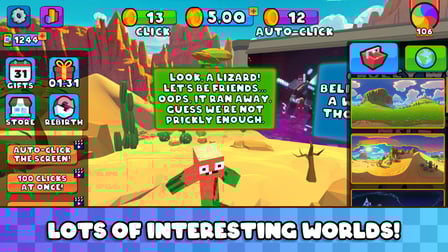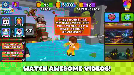 🔥 Plonge dans le jeu de clic le plus palpitant de ta vie avec Obby: Blogger Clicker ! Ta mission est de cliquer sur les blogueurs les plus en vogue, collecter des pièces et profiter de leurs mélodies accrocheuses. 🎵😍 Le jeu propose des lieux uniques allant des déserts ensoleillés aux îles de lave brûlantes, chacun présentant des personnages excentriques et des blagues hilarantes qui rehaussent le gameplay.