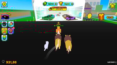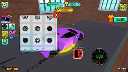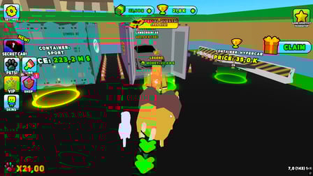 Pour commencer à jouer à Obby: Car Containers, choisissez l'un des conteneurs à ouvrir. Utilisez votre souris ou votre écran tactile pour cliquer sur le conteneur, et regardez-le s'ouvrir pour révéler vos voitures aléatoires ! Une fois que vous avez ouvert vos voitures, vous pouvez décider de les vendre ou de les garder pour les exposer dans votre showroom. Pour accéder à votre garage, cliquez sur l'icône correspondante et sélectionnez jusqu'à 10 voitures à afficher. Collectez des trophées en participant à des courses qui apparaissent dans la zone pour débloquer des conteneurs supplémentaires. Améliorez vos animaux de compagnie pour gagner encore plus de trophées et déverrouiller de nouveaux niveaux. L'accès au jeu est simple et disponible sur votre téléphone et votre ordinateur !