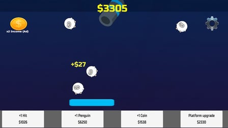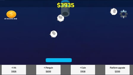 Pour contrôler votre jeu, cliquez ou touchez l'écran pour lancer vos pingouins. Chaque bouton de mise à jour que vous débloquez requiert un clic, tandis que les améliorer nécessite également des pièces que vous gagner par vos performances.