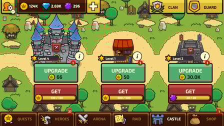 - Ăcran tactile: Sur les appareils mobiles, appuyez et balayez pour contrĂŽler vos hĂ©ros et gĂ©rer votre chĂąteau.