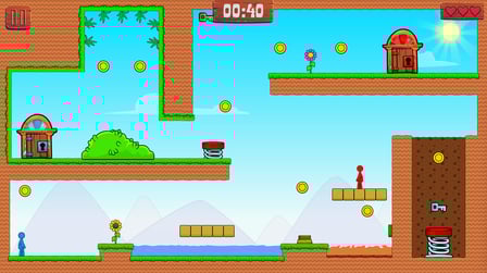 Naviguez dans le labyrinthe, résolvez des énigmes et déjouez les pièges dans Red and Blue Stick: Fire and Water 2. Avec 50 niveaux à conquérir, ce jeu offre un divertissement sans fin et des défis stimulants pour le cerveau. Que vous jouiez en solo ou avec un ami, voici comment maîtriser les commandes et sortir victorieux.