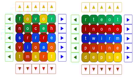 Utilisez les contrôles de flèche environnants pour faire pivoter les rangées ou les colonnes. Chaque pression de bouton déplacera les lettres de la rangée ou de la colonne spécifique, vous permettant de manipuler le puzzle et de créer des mots potentiels.