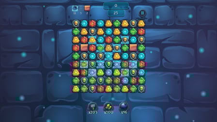 Embarquez pour votre aventure en échangeant des cristaux adjacents pour former une ligne d'au moins trois identiques. Chaque niveau a des objectifs uniques, tels que nettoyer certaines tuiles ou collecter des objets spécifiques. Atteindre ces objectifs dans le nombre donné de mouvements pour progresser davantage. Utilisez des bonus et des bonus spéciaux pour nettoyer de plus grandes sections du plateau et relever des défis plus difficiles.