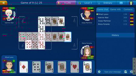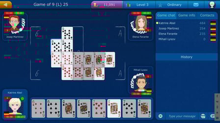 En Sept (Jeu de 9), vous prendrez le contrôle d'un jeu de cartes avec pour objectif principal de déjouer vos adversaires et de gagner la partie. Le jeu de cartes propose divers paramètres uniques, des matchs en temps réel avec de vrais joueurs et un système avancé de récompenses et de réalisations. Sans distractions dans le jeu comme les publicités, vous pouvez vous concentrer sur l'élément stratégique et profiter d'une expérience de jeu ininterrompue. Conçu pour les adultes, ce jeu offre une plate-forme sophistiquée où les joueurs peuvent s'engager dans des batailles de cartes stratégiques et socialiser grâce à des options de chat intégrées.