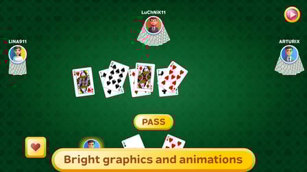 Dans Siege et Transferable Durak, vous prendrez le contrôle de votre propre deck pour déjouer vos adversaires dans une bataille de cartes stratégique. Vous rencontrerez divers endroits uniques et une gamme d'adversaires, chacun offrant un défi différent. Le jeu propose un mode dynamique spécifiquement pour le Durak transférable, qui garde le gameplay frais et engageant. Que vous soyez un joueur de cartes chevronné ou novice dans le genre, Siege et Transférable Durak sont conçus pour tous les âges, offrant une expérience accessible mais stimulante pour tout le monde. Les règles classiques du siège et du Durak transférable sont préservées, garantissant que les fans du jeu traditionnel se sentiront comme chez eux tandis que les nouveaux arrivants pourront facilement apprendre et apprécier le jeu.