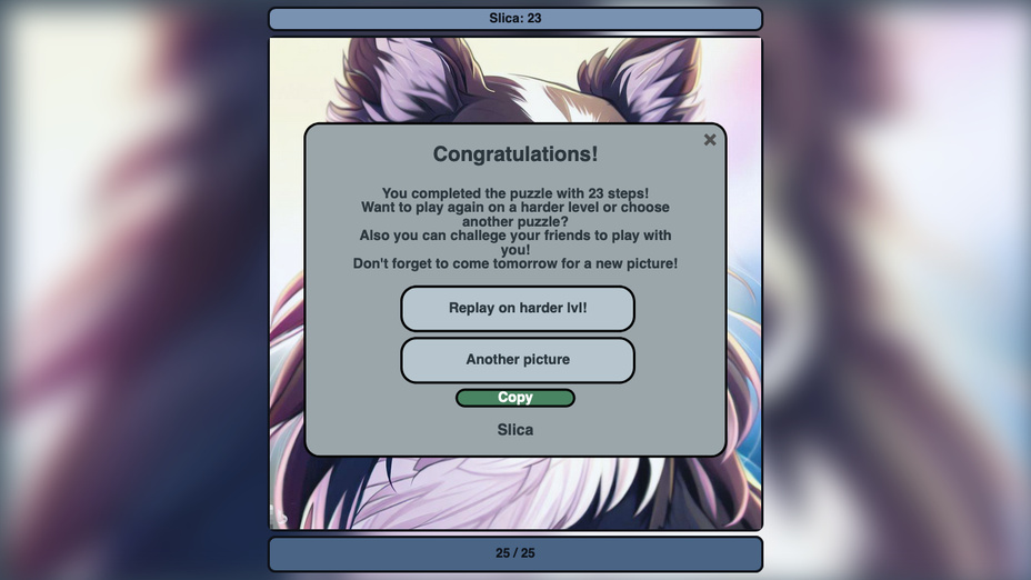 Bienvenue Ă Slica: Puzzles Neuro, oĂč la magie des rĂ©seaux de neurones vous apporte chaque jour des images uniques et captivantes. Dans cet engagement en ligne jeu de puzzle, votre objectif est de complĂ©ter la mosaĂŻque en aussi peu d'Ă©tapes que possible. Parfait pour votre tĂ©lĂ©phone et votre ordinateur, Slica: Puzzles Neuro offre un plaisir et des dĂ©fis sans fin. Ăchangez des cellules pour rĂ©vĂ©ler des images Ă©poustouflantes, et une fois que vous maĂźtrisez un puzzle, lancez-vous un dĂ©fi avec un niveau plus difficile ou invitez des amis Ă se joindre Ă la fĂȘte!