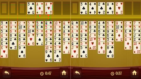 - Cliquez et faites glisser les cartes pour les déplacer vers des cellules libres ou des piles de fondation.