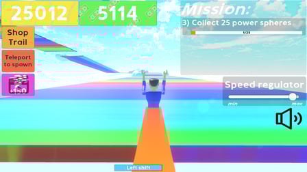 Speed simulator est un jeu passionnant oĂč les joueurs s'affrontent en courant et accumulent des points de vitesse.MĂ©canique de Base:1. Points de course et de vitesse: Les joueurs commencent avec une vitesse de base et gagnent des points en parcourant des distances. Les points accumulĂ©s augmentent la vitesse du personnage, ouvrant de nouvelles possibilitĂ©s2. SphĂšres de pouvoir: Sur la carte, vous pouvez trouver des sphĂšres de pouvoir qui donnent des bonus Ă la vitesse et aux statistiques.3. Achat de sentiers: Les joueurs peuvent dĂ©penser l'argent qu'ils gagnent sur des traits uniques qui affectent la vitesse et leur permettent de personnaliser leur personnage.4. CompĂ©titions: Des compĂ©titions rĂ©guliĂšres offrent l'occasion de concourir pour des prix et de l'argent pour des amĂ©liorations et des sentiers5. EsthĂ©tique et personnalisation: Le jeu offre une variĂ©tĂ© d'options et de sentiers de personnalisation des personnages.