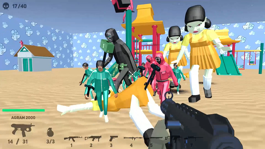Squid Shooter est un jeu d'action innovant qui fusionne l'excitation des mécanismes de tir traditionnels avec une esthétique unique sur le thÚme du calmar. Situé dans un monde sous-marin dynamique, les joueurs assument le rÎle d'un calmar chargé de défendre son territoire contre une force d'invasion, connue sous le nom d'Armée de Calmar. Contrairement aux jeux de tir typiques, Squid Shooter présente aux joueurs une variété d'ennemis colorés, y compris les emblématiques poupées de la garde rouge, chacune nécessitant des stratégies distinctes pour vaincre. Avec ses graphismes captivants et son gameplay engageant, Squid Shooter se distingue comme un nouvel ajout au genre des jeux de tir, offrant à la fois des modes solo et multijoueur.