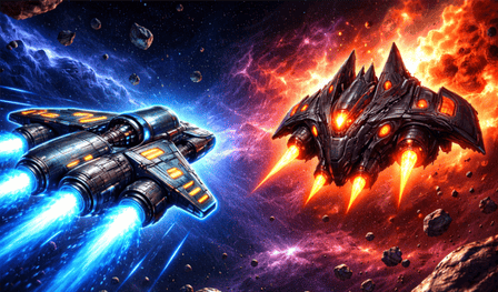 • Bureau : Déplace-toi avec les touches WASD ou les flèches, ou tiens le clic gauche pour faire glisser ta navette. Le tir est automatique—focalise-toi sur le positionnement.