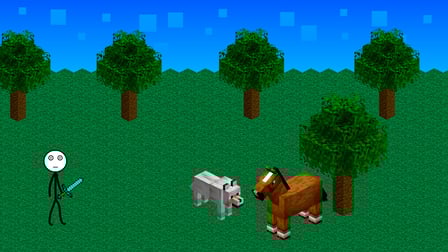 Artisanat Stickman. Chapitre 3 est un jeu d'aventure passionnant où vous pouvez explorer le vaste monde de Stickman aux côtés de son père. Jouez en ligne gratuitement sans téléchargement et plongez - vous dans l'atmosphère nostalgique et polyédrique qui rappelle Minecraft. Après une bataille triomphale avec le Dragon Ender, Stickman se met en route pour rendre visite à ses parents, se lançant dans un nouveau voyage rempli de rencontres passionnantes. Les joueurs affronteront des monstres terrestres et sous-marins, ajoutant des niveaux de défi et d'excitation au gameplay. Que vous soyez fan de Stickman ou nouveau dans la série, ce jeu offre un mélange parfait d'aventure, d'exploration et de combat, garantissant des heures de divertissement. Plongez dans le dernier chapitre de la trilogie Stickman Craft et découvrez quelles nouvelles aventures vous attendent!