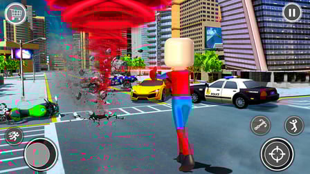 Commencez par sélectionner votre rôle en tant que héros ou méchant. Naviguez à travers la ville en utilisant les touches fléchées ou le joystick de votre appareil. Accomplissez des missions en atteignant des endroits spécifiques et en interagissant avec divers objets et personnages. Gardez un œil sur votre santé et votre niveau d'énergie, et utilisez des bonus dispersés dans toute la ville pour améliorer vos capacités.