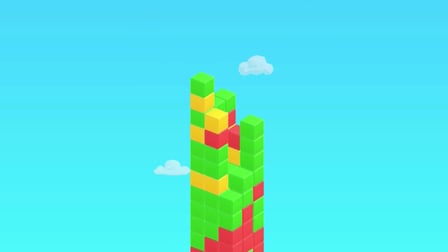Pour commencer votre aventure dans Tower Tap, il vous suffit de taper sur des grappes de deux cubes ou plus adjacents de la même couleur. Votre objectif est de démolir le plus de couches possible pour atteindre le coffre au trésor en bas. Chaque tapotement doit être calculé pour s'assurer que vous ne laissez pas de cubes isolés derrière.