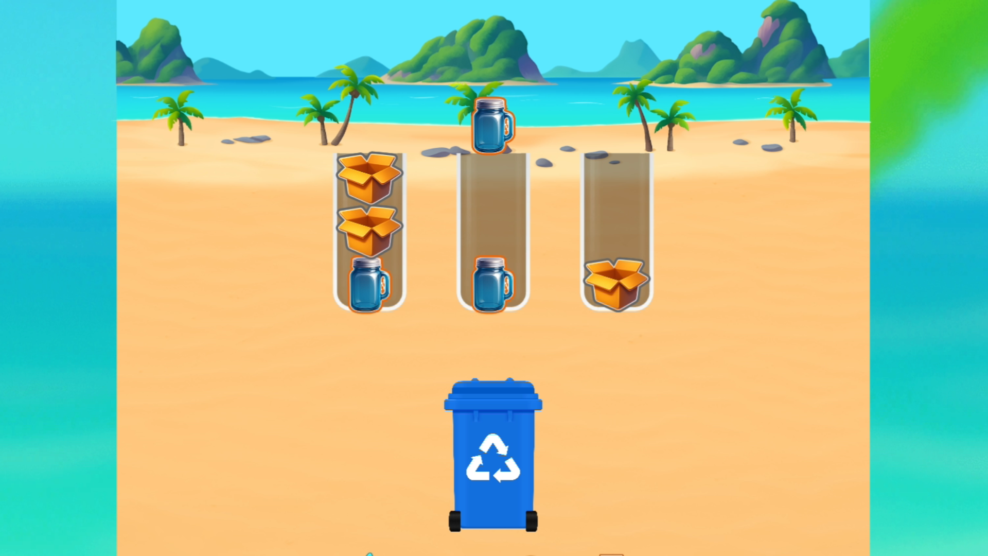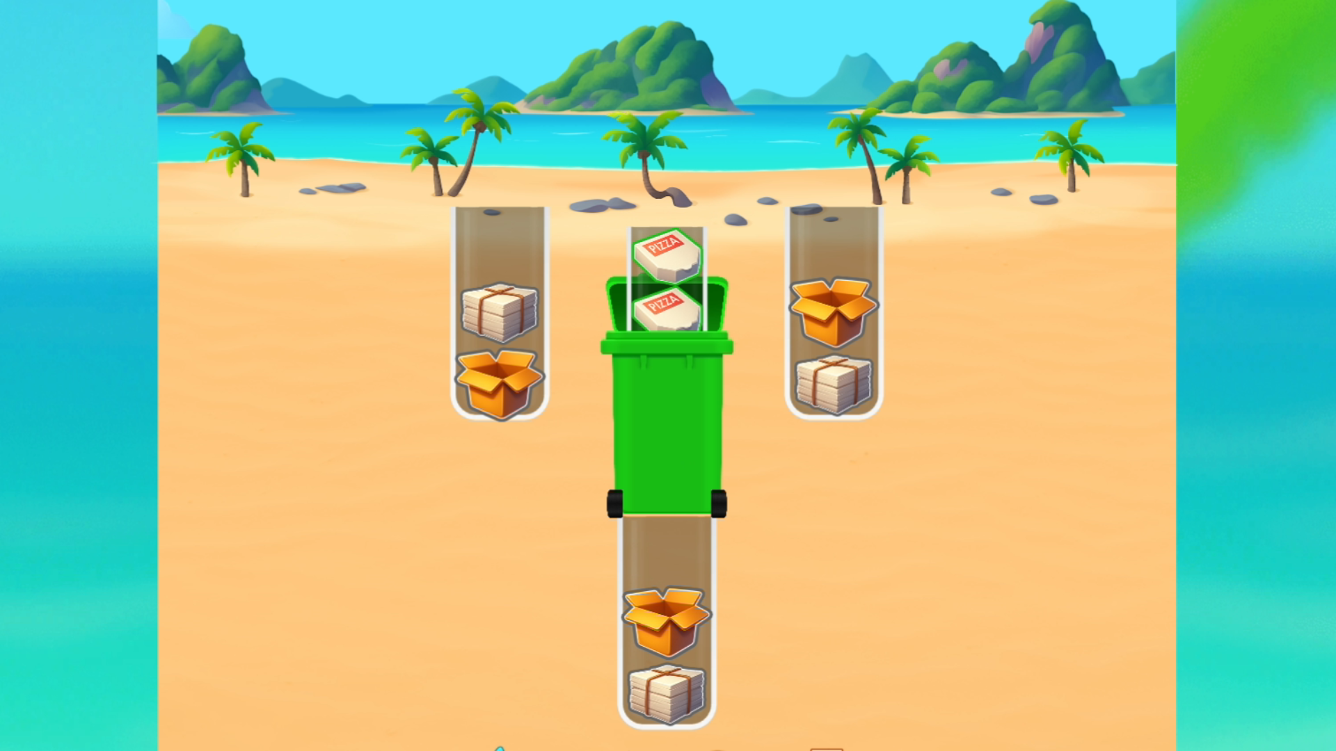 Commencer à jouer à Trash Sort est simple. Votre tâche est de toucher et de faire glisser les objets dans la benne correspondante. Chaque benne est marquée par un symbole ou une couleur correspondant à un type de déchet spécifique. Par exemple, une icône de bouteille représente la benne pour le verre, tandis qu'une feuille signifie les déchets organiques. Plus vous triez rapidement, plus vous accumulez de points.