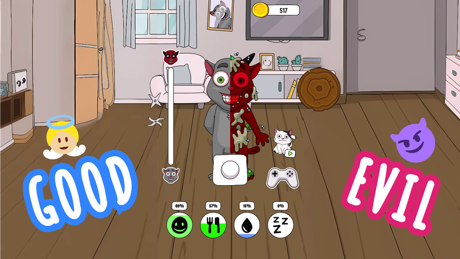 Le chat troll Juan s'inspire du genre populaire des jeux virtuels pour animaux de compagnie, combinant des éléments d'humour et de soin. Le concept provient des jeux d'animaux virtuels classiques qui ont gagné en popularité à la fin des années 90 et au début des années 2000, mais il ajoute une touche avec la nature espiÚgle de Juan et la menace cachée d'un monstre si vous allez trop loin.