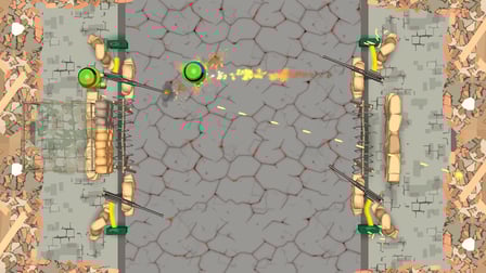 Pour jouer à Two Soldiers, suivez ces étapes simples : 1. Choisissez votre soldat et sélectionnez le mode de jeu à deux en local. 2. Prenez place sur le même appareil avec un ami, chaque joueur utilisant une partie de l'écran. 3. Utilisez les touches fléchées ou les commandes tactile pour déplacer votre soldat et visez votre adversaire avec votre mitrailleuse. 4. Utilisez votre barricade pour vous protéger des balles ennemies. En cas de besoin, courrez au centre de l'arène pour récupérer des munitions et des objets de santé, en faisant attention aux attaques adverses. 5. Le joueur qui réussit à éliminer son adversaire en premier remporte la partie.