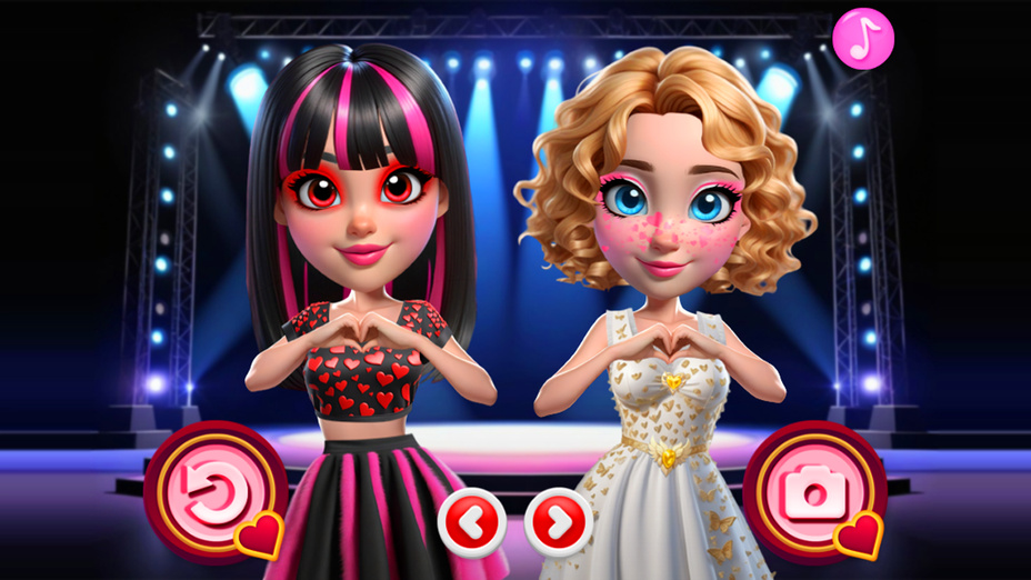 Entrez dans un monde oĂč les styles de mode entrent en collision Coeurs vibrants Glamour vs Punk! Ce jeu passionnant offre aux joueurs la possibilitĂ© d'explorer les styles contrastĂ©s de deux meilleures amies, Lily et Roxana. Avec le charme romantique de Lily et l'audace audacieuse de Roxana, vous pouvez mĂ©langer et assortir des tenues qui reflĂštent votre propre sens de la mode. Que vous vous penchiez vers des looks doux et rĂȘveurs ou l'essence rebelle du punk, ce jeu est une toile pour votre crĂ©ativitĂ©!