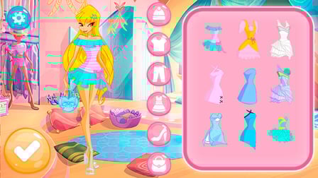 Jouer à Winx: La magie de l'amitié est facile! Sur votre ordinateur, utilisez votre souris pour naviguer parmi les différentes options d'habillage, sélectionnez des tenues pour Stella et cliquez pour personnaliser son apparence. Pour mobiles utilisateurs, appuyez simplement sur différents vêtements pour voir à quoi ils ressemblent sur Stella, et utilisez des gestes de pincement pour zoomer et ajuster. Une fois que vous êtes satisfait de la tenue, décorez les pages de l'album photo en faisant glisser des autocollants et en personnalisant les mises en page avec votre doigt. Appuyez sur l'icône magic café pour effectuer la transition et voir la réaction de Bloom à vos créations!