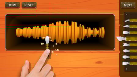 - Utilisez votre souris ou votre écran tactile pour sculpter le bois et le façonner en l'objet de votre choix.