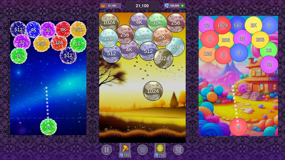 2048 Marmelade is an exciting puzzle game where you can merge numbers by shooting soft jelly balls with matching numbers. Play online for free without downloading and immerse yourself in the atmosphere of delightful ASMR sounds as jelly balls merge, creating a relaxing and engaging experience. The game offers a minimalist and elegant design, allowing you to think outside the box and sharpen your mind. As you progress, you'll collect gems or diamonds, adding an extra layer of excitement to your gameplay. Enjoy the variety of backgrounds and customizable jelly ball skins to enhance your gaming experience. Find out how far you can push your skills by climbing the leaderboard and discovering your jelly merging limit. Try your hand at this exciting math puzzle game right now!