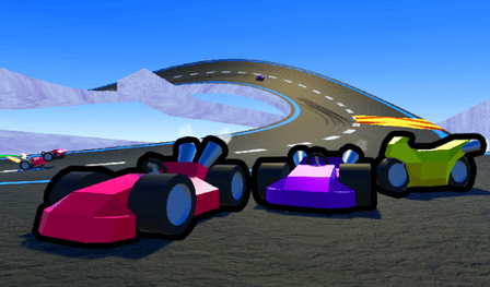 - Multiple vehicles including karts, bikes, and race cars