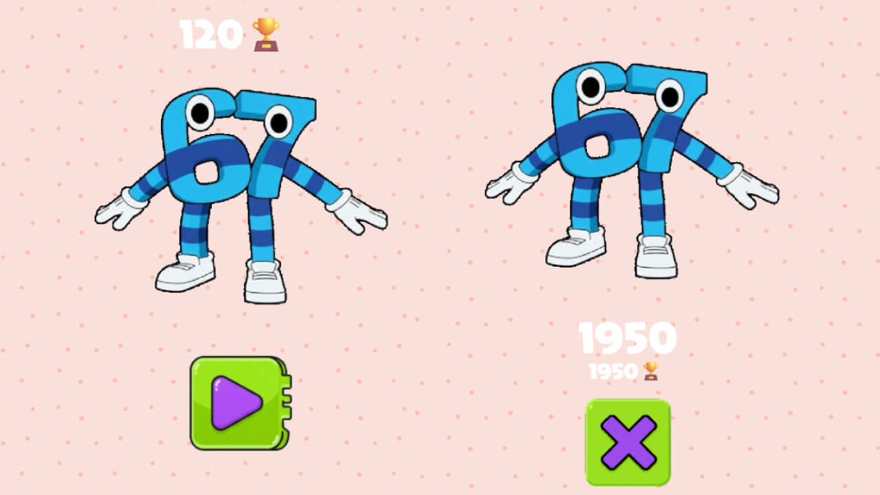 Immerse yourself in the captivating world of 67, an engaging online game where quick reflexes and number recognition are key. As numbers descend from above, your task is to catch them with precision. But beware, catching the wrong number will cost you one of your precious three lives. The gameplay intensifies as the speed increases, challenging your ability to keep pace. Whether on your phone or computer, strive to score as many points as possible and surpass your personal best!