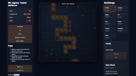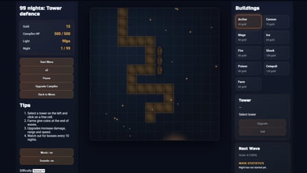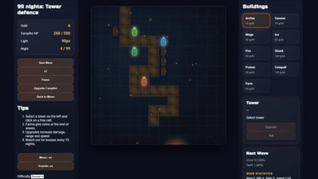 99 Nights: Tower defence — play online 🎮