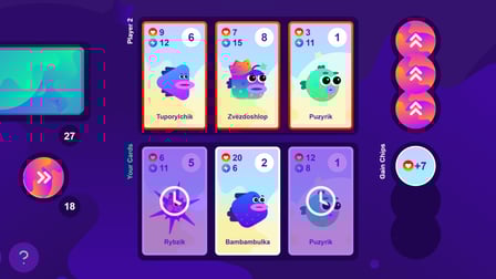 Start by launching Aquatic Freaks in your browser, either on your phone or computer. You’ll be dealt three cards at random. On your turn, play a card from your hand, and use its special ability to gain an advantage. Your goal is to outwit your opponent and claim victory!