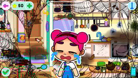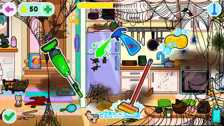 Control your avatar using your mouse or touch screen. Click and drag for cleaning tasks and interact with various objects by tapping or clicking on them. Customize your avatar by selecting items from the wardrobe using easy-to-navigate menus.