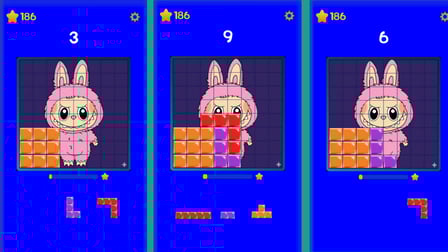 For phone users, use your finger to tap, drag, and drop the blocks onto the board. On a computer, simply click and drag the blocks with your mouse. Take your time to align pieces correctly, and watch the magic unfold as Labubu comes alive!