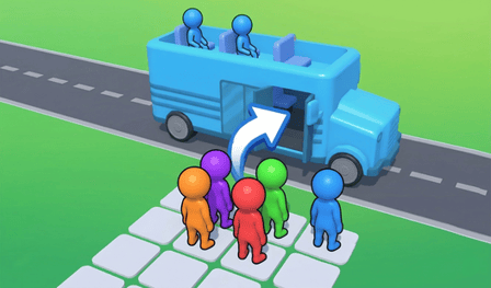 Blocked passengers won't move. Someone standing in front? Deal with them first. Pick passengers with clear routes. Strategic order prevents gridlock. One wrong tap creates a chain reaction.