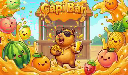 Capi Bar is an idle tycoon game where you merge fruits and run a juice bar with a capybara. It's part Suika Game (the viral watermelon merge physics), part Restaurant Tycoon—wrapped in a cozy browser package. Think relaxing progression meets satisfying merge combos. You'll start with a wooden crate stand and slowly upgrade to a futuristic mall kiosk. The loop is simple: drop fruits, merge them into smoothies, sell for cash, and reinvest in bigger containers and better locations.