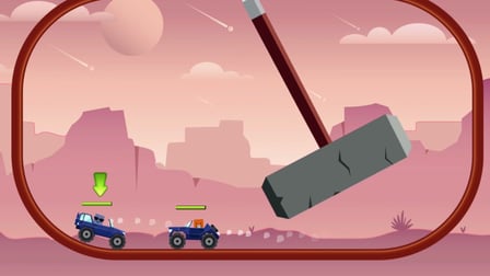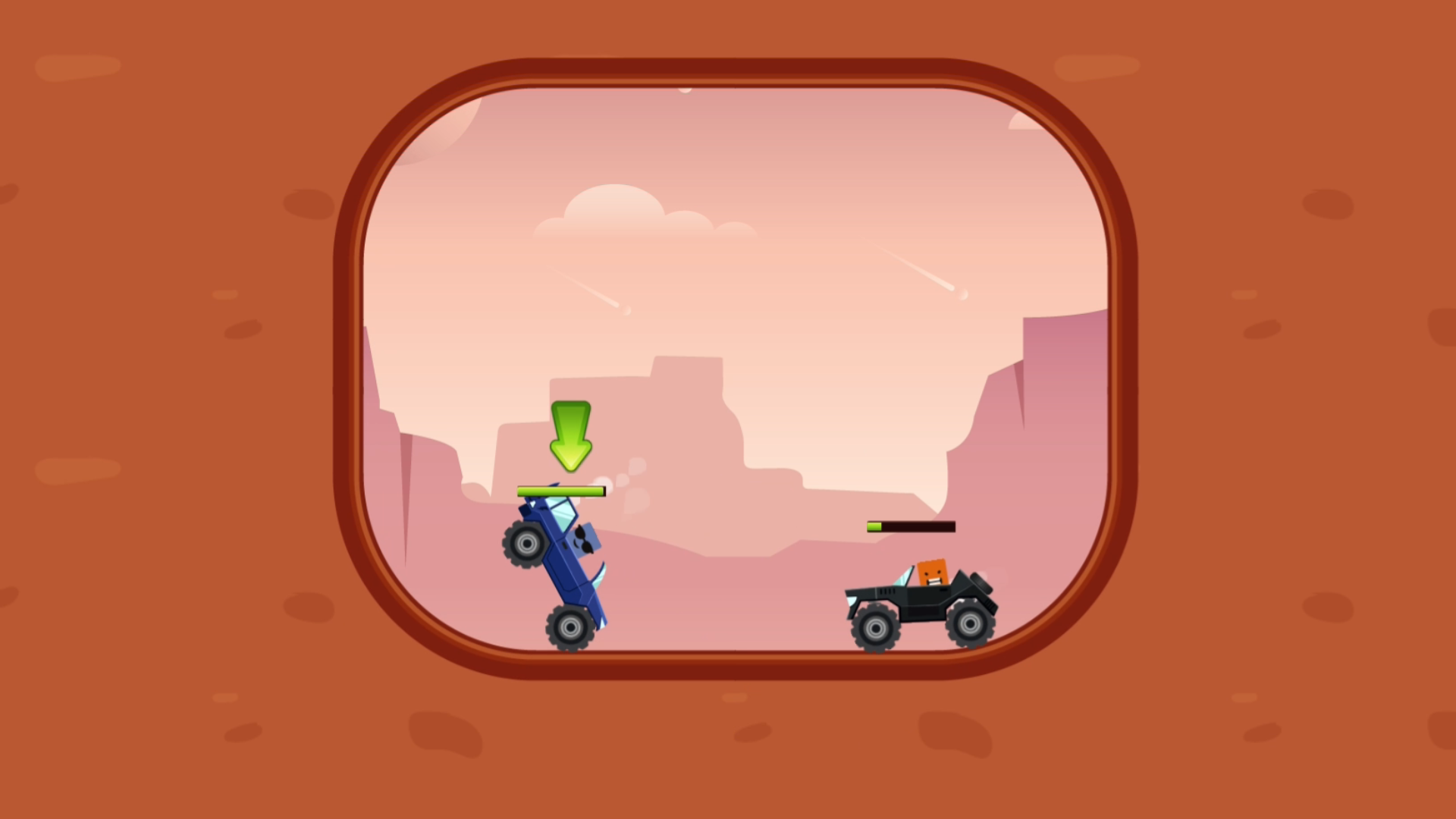 It's pure arcade silliness. The visuals are basic—simple 2D vector art with flat colors and minimal lighting. Think early Flash game aesthetics but smoother. The cars are just colored boxes with wheels, and the arenas are plain loops or platforms. The physics do the heavy lifting here; watching your car flip through the air and accidentally pancake your opponent's head is genuinely funny every time. There's no music that stands out, just generic upbeat background noise and cartoonish crash sound effects. It's not pretty, but it doesn't need to be.